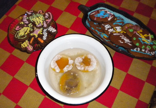 Kook - Leiva ohutu sugulane, ühist on neil ainult kohutava nätske taigna jagu. Juhin tähelepanu kaunile kirkale kevadrohelisele toonile, mis tulenes vahukommidest.
